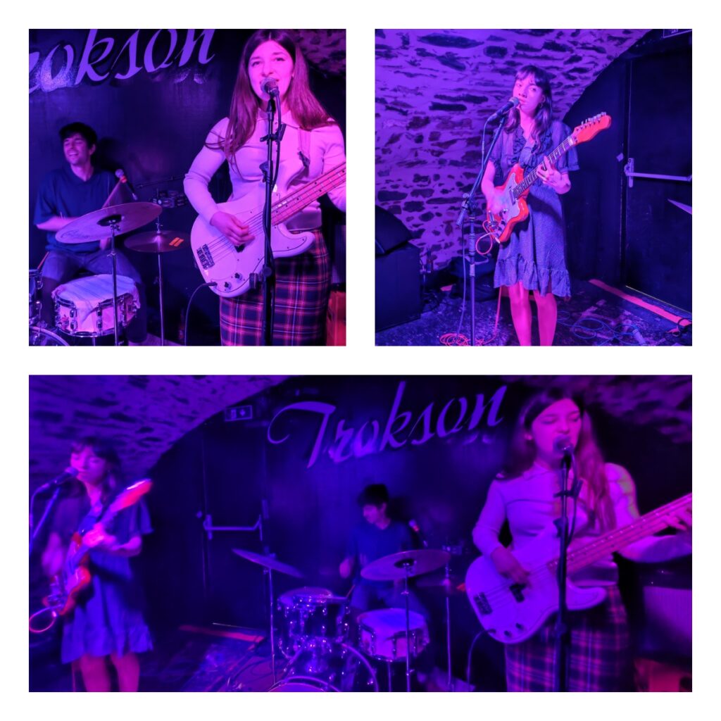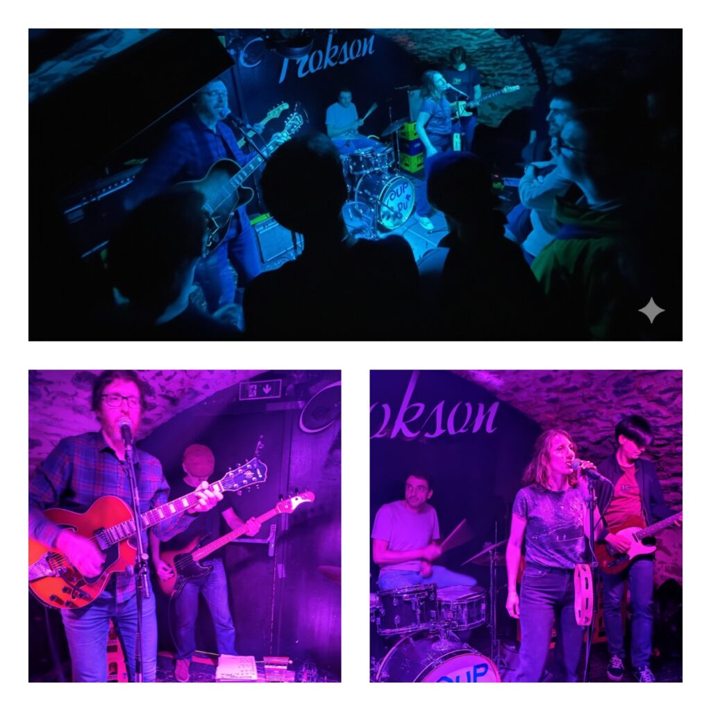 Les textes de Coup Dur possèdent ce côté désuet des banalités adolescentes et des drames de poche, chantés avec une insouciance qui cache un vrai mordant. Le résultat est court, ultra frais et malicieux. En piochant dans les petits riens du quotidien pour en faire des hymnes immédiats, les morceaux s’enchaînent avec une efficacité redoutable. Le charme opère à tel point que le groupe — avec Clémence grimée en demoiselle de cour époque Louis XIV — demandera même au public de lancer un pogo sur le titre « J’attendrai » filmé à cette occasion pour les besoins de leur prochain clip. Une fin de soirée en sueur et en collisions : finalement, la cave du Trokson était le meilleur endroit pour fêter l’amour ce samedi.