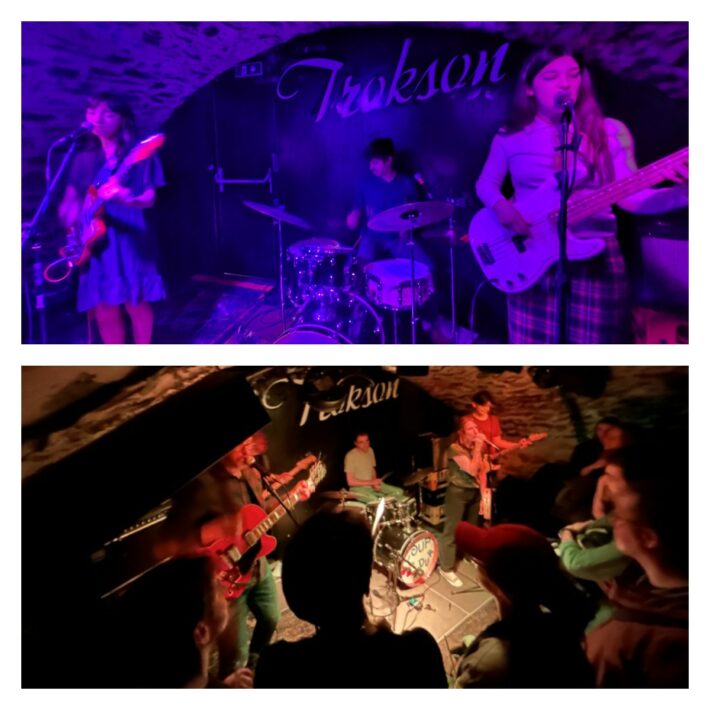 Les textes de Coup Dur possèdent ce côté désuet des banalités adolescentes et des drames de poche, chantés avec une insouciance qui cache un vrai mordant. Le résultat est court, ultra frais et malicieux. En piochant dans les petits riens du quotidien pour en faire des hymnes immédiats, les morceaux s’enchaînent avec une efficacité redoutable. Le charme opère à tel point que le groupe — avec Clémence grimée en demoiselle de cour époque Louis XIV — demandera même au public de lancer un pogo sur le titre « J’attendrai » filmé à cette occasion pour les besoins de leur prochain clip. Une fin de soirée en sueur et en collisions : finalement, la cave du Trokson était le meilleur endroit pour fêter l’amour ce samedi.