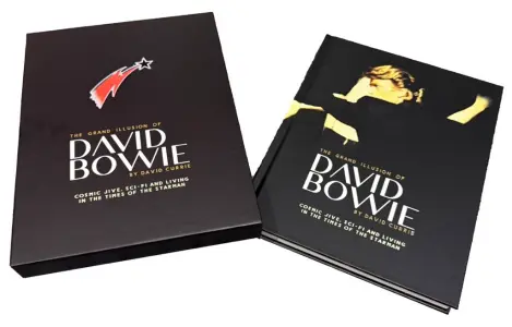 Edité chez Legends Publishing, The Grand Illusion of David Bowie vient à propos pour ce dixième anniversaire de sa disparition. Disponible sur le marché ce mois de janvier 2026, le « box set » est à la fois un livre d’art et une collection de photographies. Tout son contenu est consacré à la recherche des pluralités de la star du rock, jeux de masque, illusions de lui-même offertes au public, dérobades et retours sous d’autres formes… Bowie aura presque tout été depuis le printemps 1967 ( voire 1963 avec ses premiers singles folk ou mod) jusqu’ à l’hiver 2016. Le « Box set », très bel objet et livre d’art, met en images et en mots, sur deux parties distinctes organisées en deux volumes, la personnalité complexe du musicien / performer/ acteur/ peintre et collectionneur d’art contemporain. David Bowie fût incontournable tout au long de sa carrière commencée pourtant sans grand succès commercial, quelques mois avant l’explosion du Swinging London de la fin des années 1960. A cette époque le David de 19/20 ans était fan de Syd Barrett, artiste météorite qui s’exploserait bientôt contre The Wall… Il gardera le goût des excentricités et des compositions tarabiscotés à l’instar du premier leader de Pink Floyd.