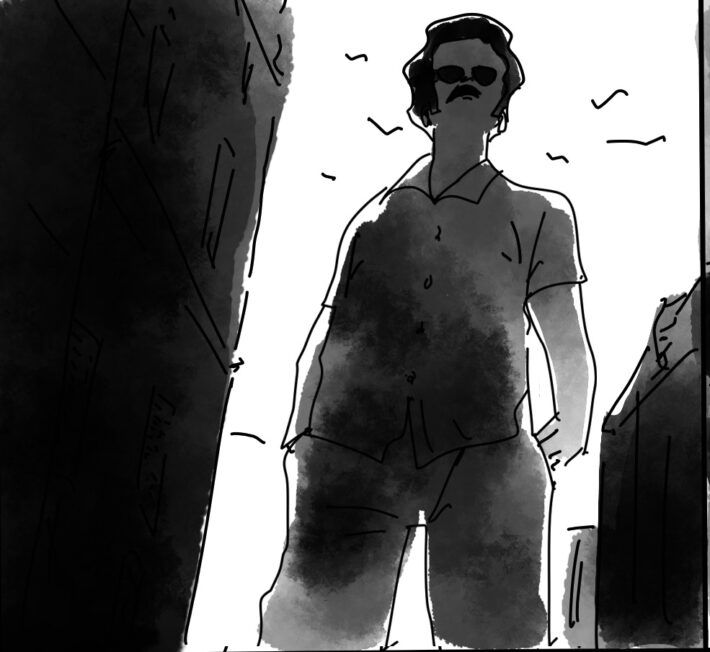 La musique d’ores et déjà enregistrée , est disponible sur le bandcamp d’Aiolitemple, déclinée en 12 titres, comme autant de chapitres qui déroulent la narration du récit. Mathes se plaît à utiliser la technique du talk over et le rythme de diction des textes comme ses intonations se calquent souvent sur ceux de Gainsbourg… Il y a beaucoup d’humour et de second degré dans ce qui pourrait frôler le pastiche dans le cas contraire. Ainsi le titre « Scoumoune à Endoume » va t-il jusqu’à associer une voix féminine imitant l’accent de Birkin, pour donner la réplique à Mathes qui nous raconte les déboires du héros de cette dégringolade. « Aïoli Temple » est un reggae qui évoque « Marilou Reggae » ou les expériences jamaïcaines de Gainsbourg sur l’album Aux armes et caetera ( 1979). Bref, si le collectif avait voulu rendre un hommage au beau Serge et au renouveau du polar made on Mars ( Izzo, Coulomb, Carrese, Scotto, éditions L’écailler du Sud etc, de la fin 1990 début 2000) il ne s’y serait pas pris autrement…