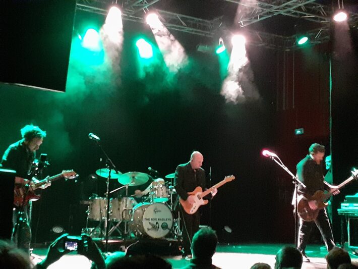 Depuis cette première rencontre il y a 30 ans avec The Boo Radleys, la configuration du groupe a changé et de l’eau a coulé sous les ponts de la Mersey… Ceci pour dire aussi que les styles musicaux ont connu des vagues différentes et qu’il est peut-être désuet ou purement nostalgique de se retrouver ici, par un soir pluvieux de février….Sans Martin Carr , compositeur clef des premiers lp, mais toujours avec Sice Rowbottom à la guitare et au chant, le groupe a t- il gardé toute sa superbe ? Dans la position de front man, Sice a conservé sa voix haut perchée tout en affichant une bonhommie et une physionomie qui l’éloignent des référents habituels de ce genre d’exposition publique, plus émaciés, plus introvertis, enfin plus tour… Son abdomen c’est un peu arrondi sous un costume noir ouvert, aux bas de pantalon qui plissent. L’ homme plaisante sur la paire de baskets qu’il porte et nous montre, l’estime aussi anachronique que finalement à son goût. Tout le monde sourit. Car qu’importe le look! On ne vient pas voir des teenagers, chacun le sait, et la moyenne d’âge du public tourne davantage autour de la cinquantaine qu’elle ne lorgne vers de plus jeunes décennies.